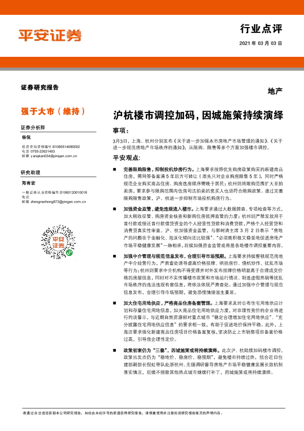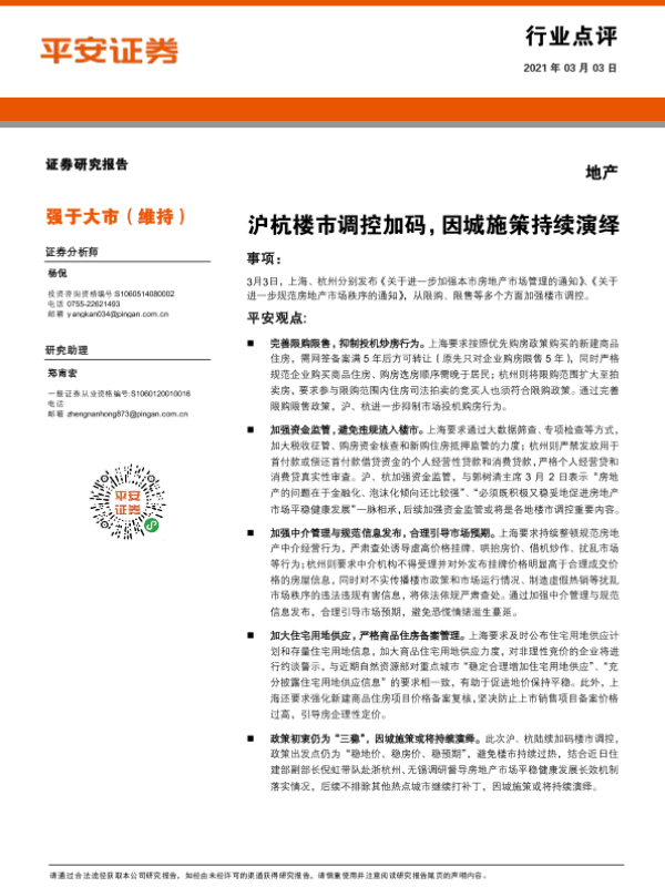 【平安证券】【20210303】地产行业点评:沪杭楼市调控加码,因城施策持续演绎-3页