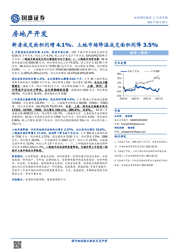【国盛证券】【20210305】房地产开发行业月报:新房成交面积同增4.1%,土地市场降温成交面积同降3.5%-24页
