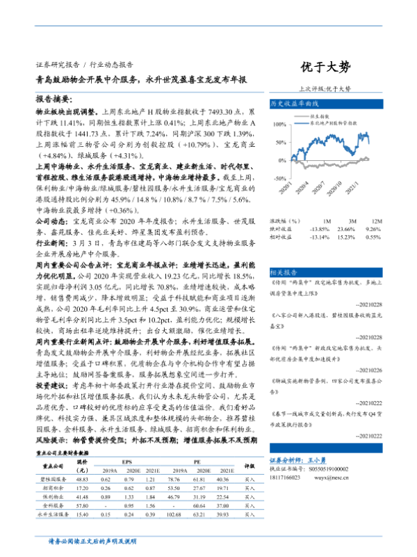 【东北证券】【20210307】青岛鼓励物企开展中介服务,永升世茂盈喜宝龙发布年报报告-14页