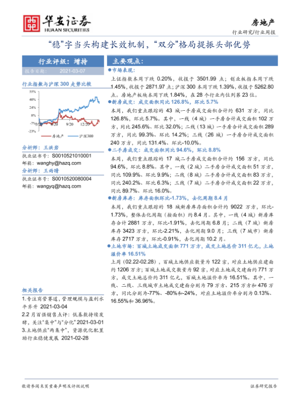 【华安证券】【20210307】房地产行业周报:“稳”字当头构建长效机制,“双分”格局提振头部优势-17页