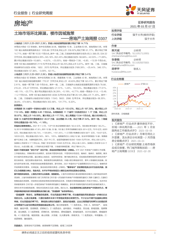 【天风证券】【20210307】土地市场环比降温,楼市因城施策-9页