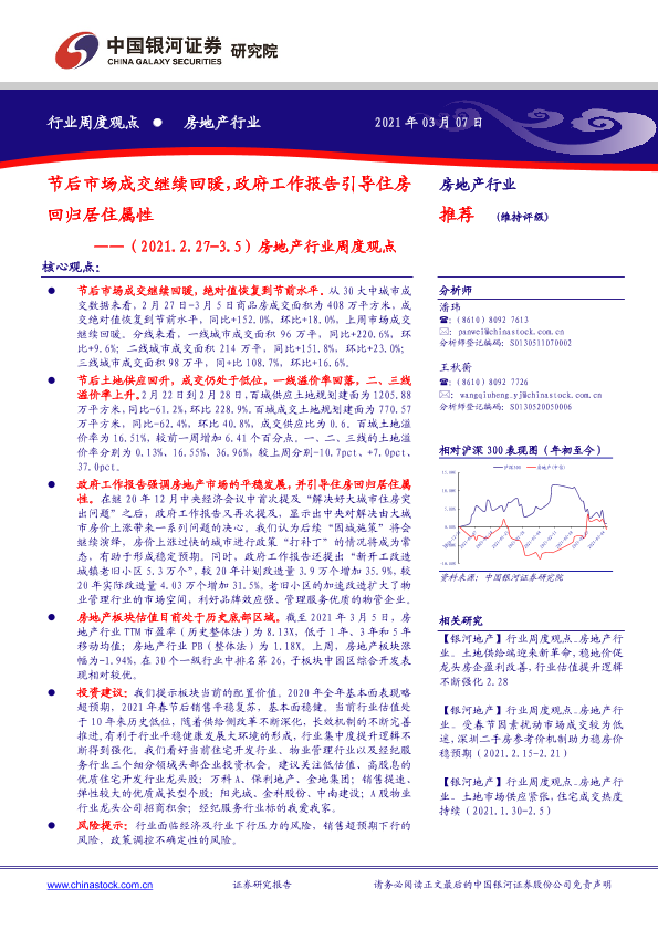【银河证券】【20210307】节后市场成交继续回暖,政府工作报告引导住房回归居住属性-13页