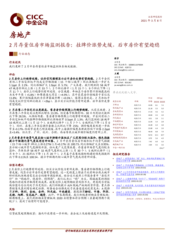 【中金公司】【20210308】2月存量住房市场监测报告:挂牌价涨势走缓,后市房价有望趋稳-14页