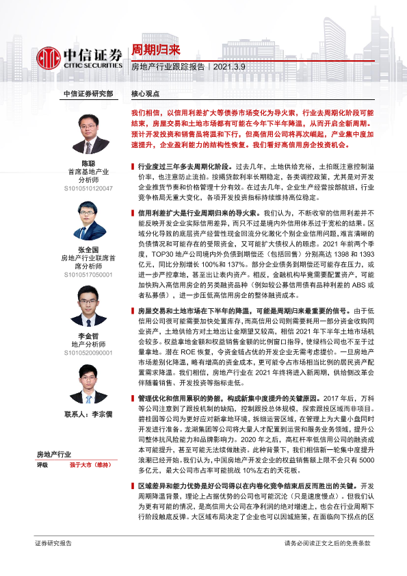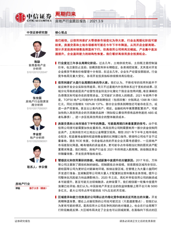 【中信证券】【20210309】房地产行业跟踪报告:周期归来-5页