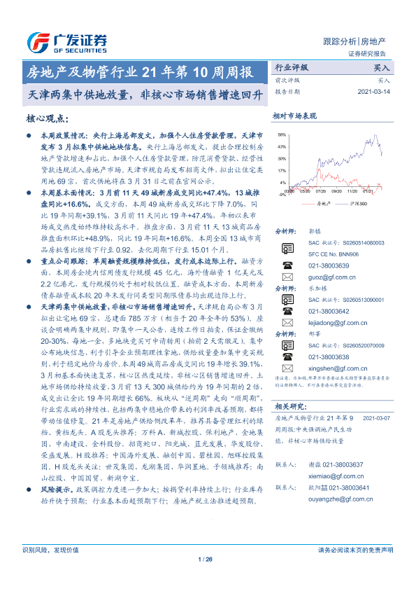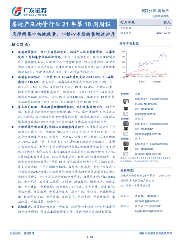 【广发证券】【20210314】天津两集中供地放量,非核心市场销售增速回升-26页
