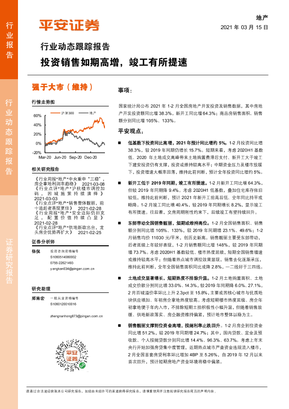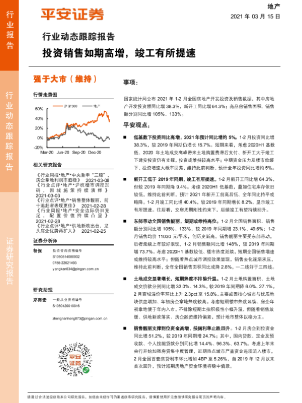 【平安证券】【20210315】地产行业动态跟踪报告:投资销售如期高增,竣工有所提速-13页