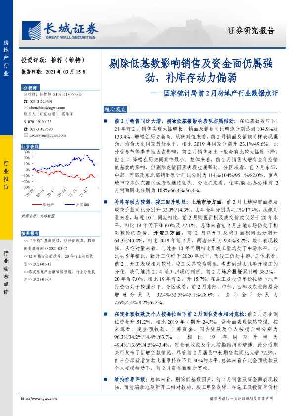 【长城证券】【20210315】国家统计局前2月房地产行业数据点评-11页