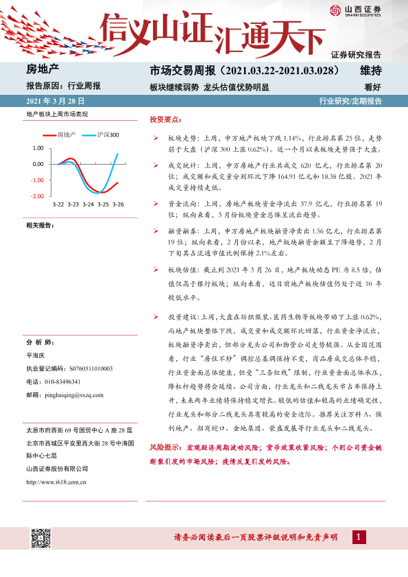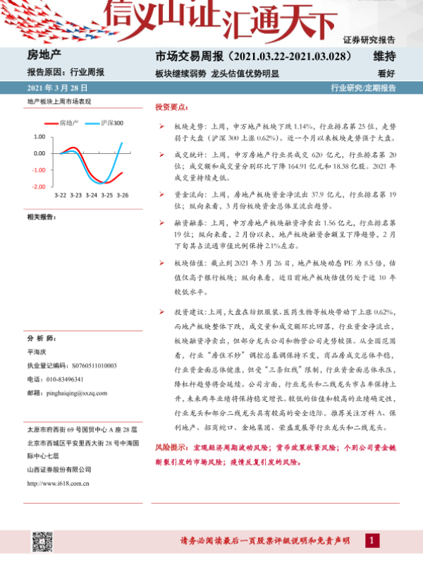 【山西证券】【20210328】房地产市场交易周报:板块继续弱势 龙头估值优势明显-20页