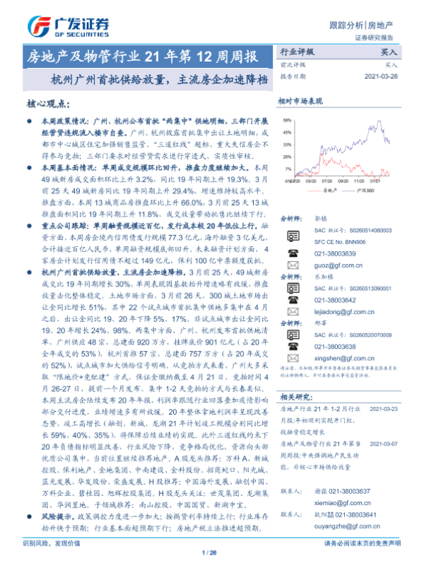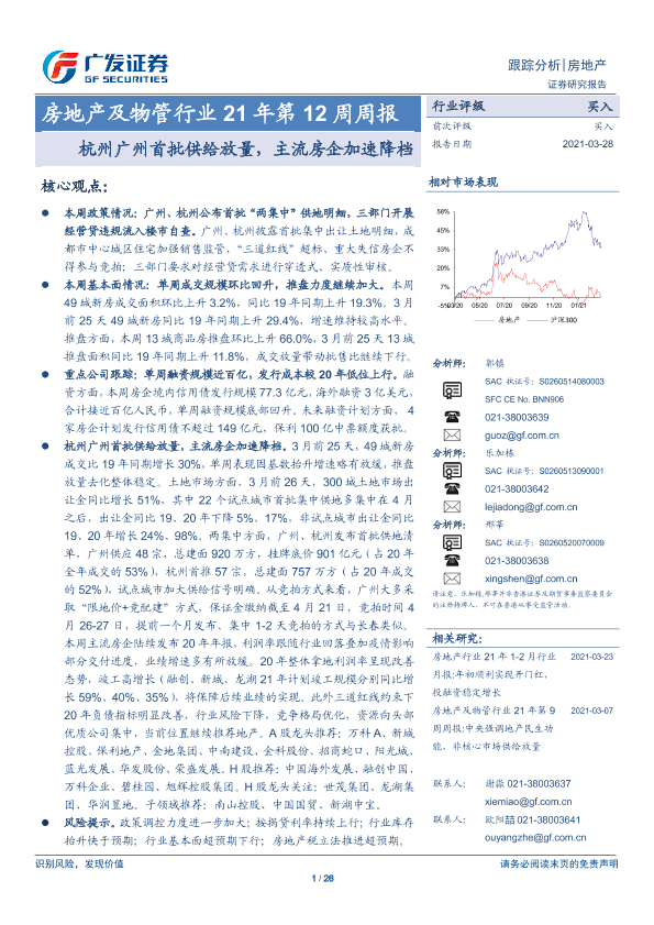 【广发证券】【20210328】房地产及物管行业21年第12周周报:杭州广州首批供给放量,主流房企加速降档-26页