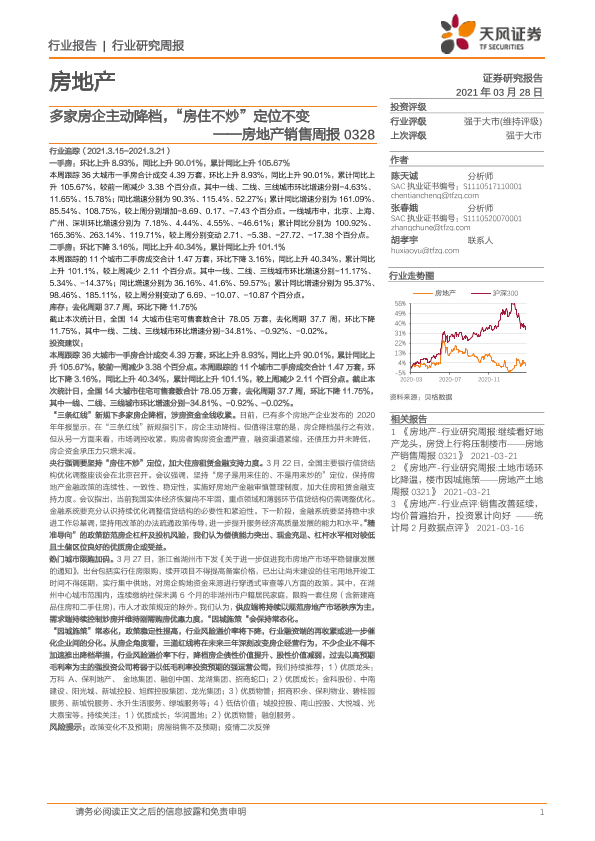 【天风证券】【20210328】多家房企主动降档,“房住不炒”定位不变-18页