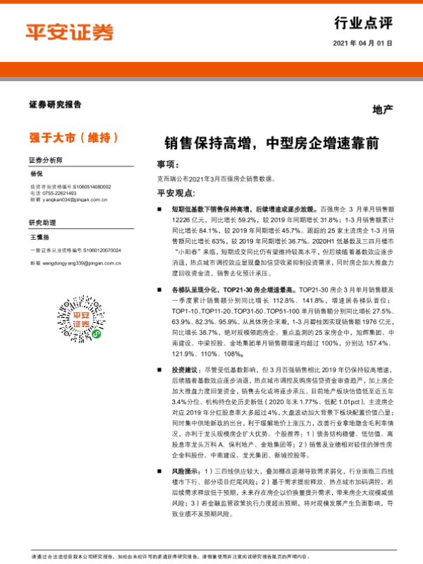 【平安证券】【20210401】地产:销售保持高增,中型房企增速靠前-4页