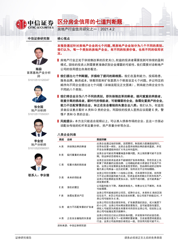 企业分类 供给侧改革 信用风险 房地产信用分析 投资价值