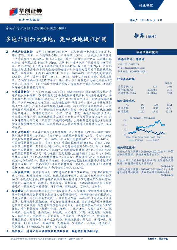 【华创证券】【20210411】房地产行业周报:多地计划加大供地,集中供地城市扩围-16页