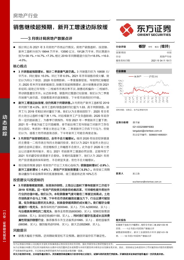 【东方证券】【20210419】3月统计局房地产数据点评:销售继续超预期,新开工增速边际放缓-11页