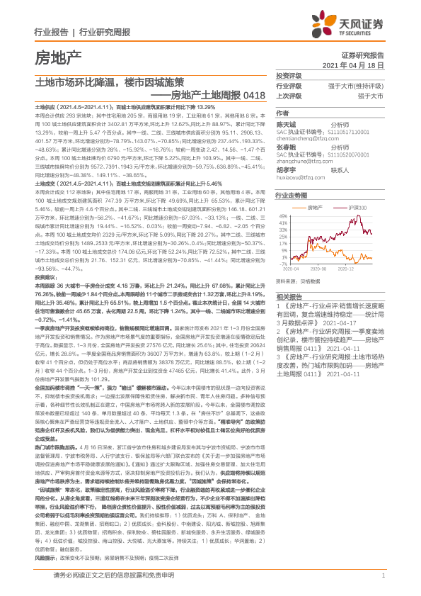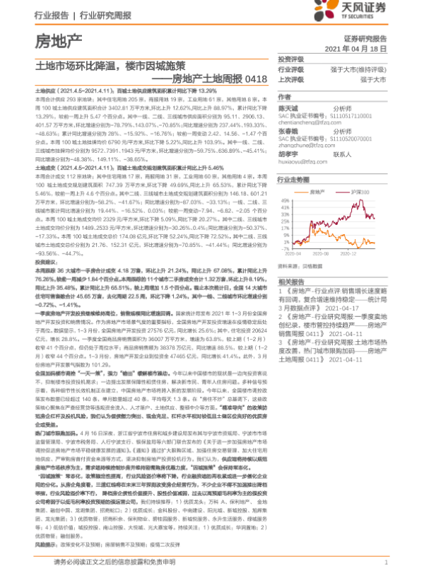 【天风证券】【20210418】房地产土地周报:土地市场环比降温,楼市因城施策-10页