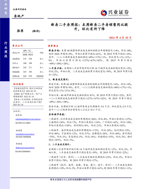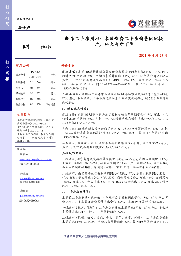 【兴业证券】【20210425】新房二手房周报:本周新房二手房销售同比提升,环比有所下降-27页