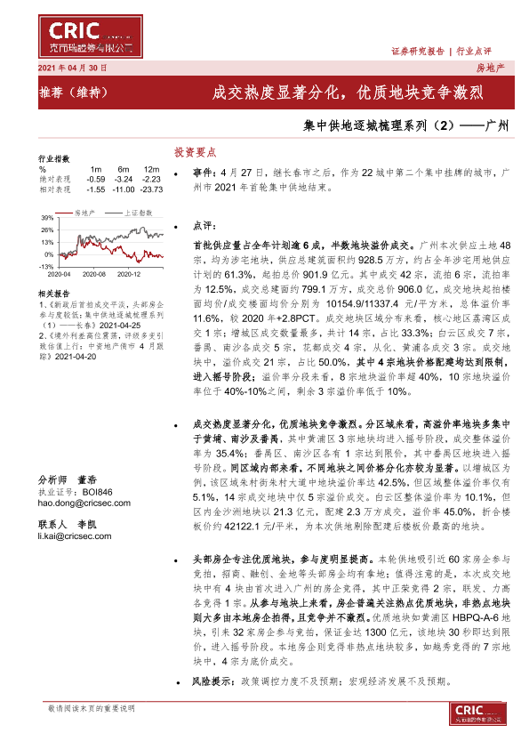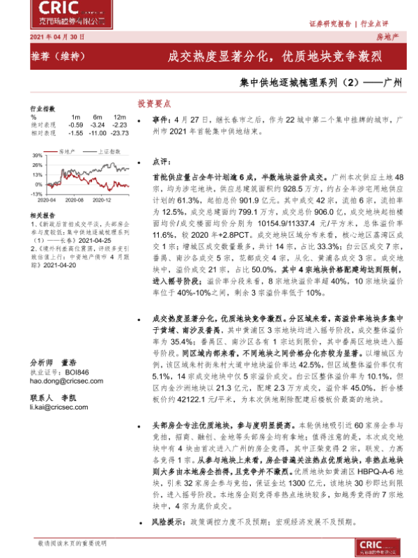 【克而瑞证券】【20210430】集中供地逐城梳理系列(2)——广州:成交热度显著分化,优质地块竞争激烈-5页
