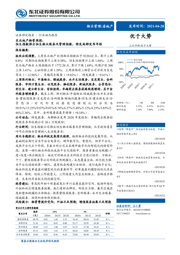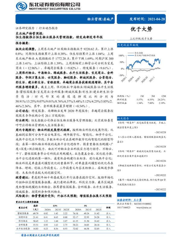 【东北证券】【20210428】东北地产物管周报:恒生指数推出恒生物业服务及管理指数,特发南都发布年报-19页