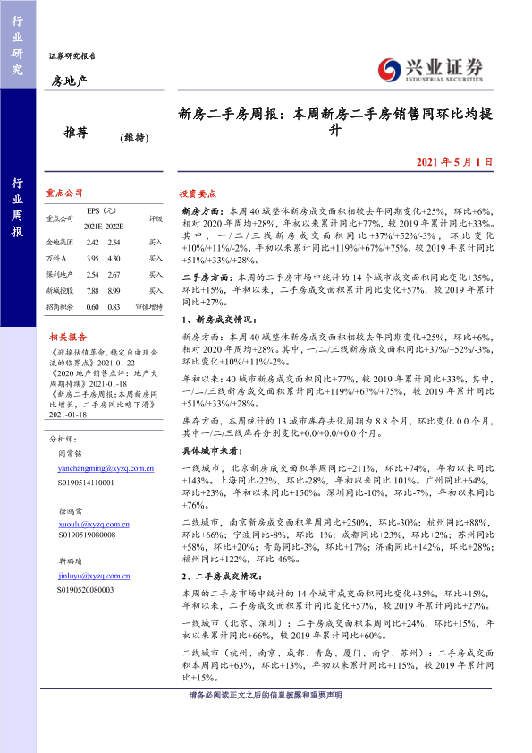 【兴业证券】【20210501】新房二手房周报:本周新房二手房销售同环比均提升-27页