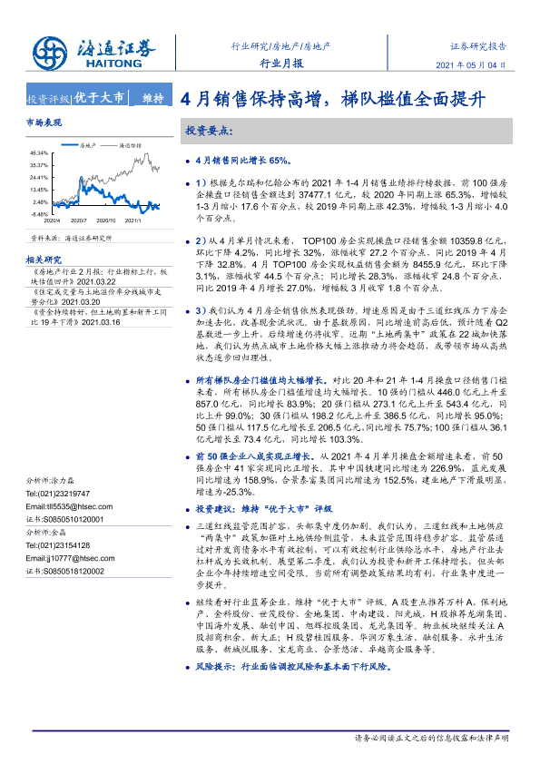 【海通证券】【20210504】4月销售保持高增,梯队槛值全面提升-11页