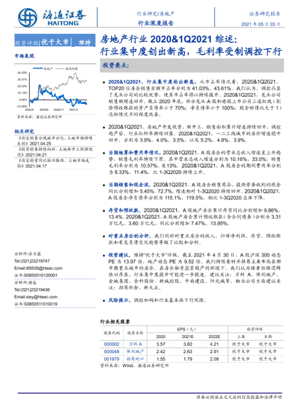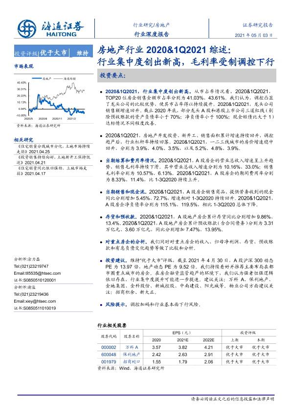 【海通证券】【20210503】房地产行业2020&1Q2021综述:行业集中度创出新高,毛利率受制调控下行-27页