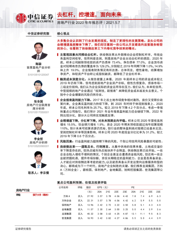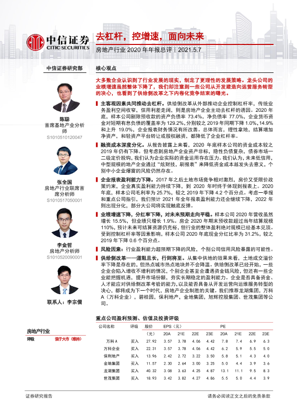 【中信证券】【20210507】房地产行业2020年年报总评-17页