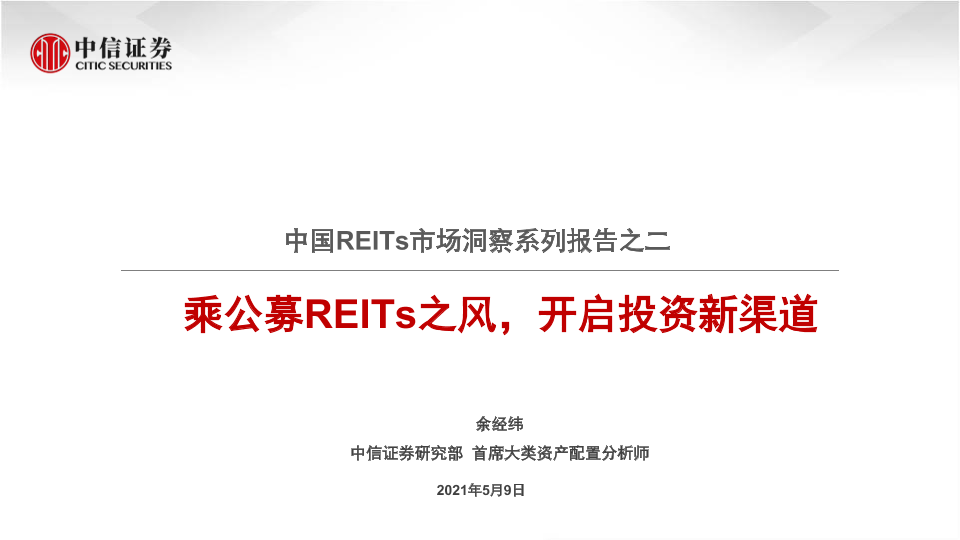 【中信证券】【20210509】乘公募REITs之风,开启投资新渠道-22页