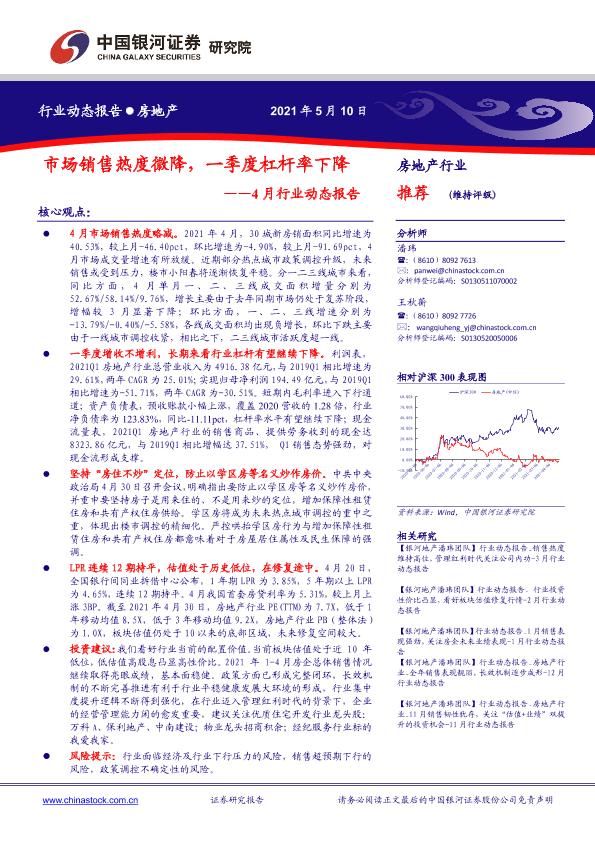【银河证券】【20210510】房地产4月行业动态报告:市场销售热度微降,一季度杠杆率下降-28页