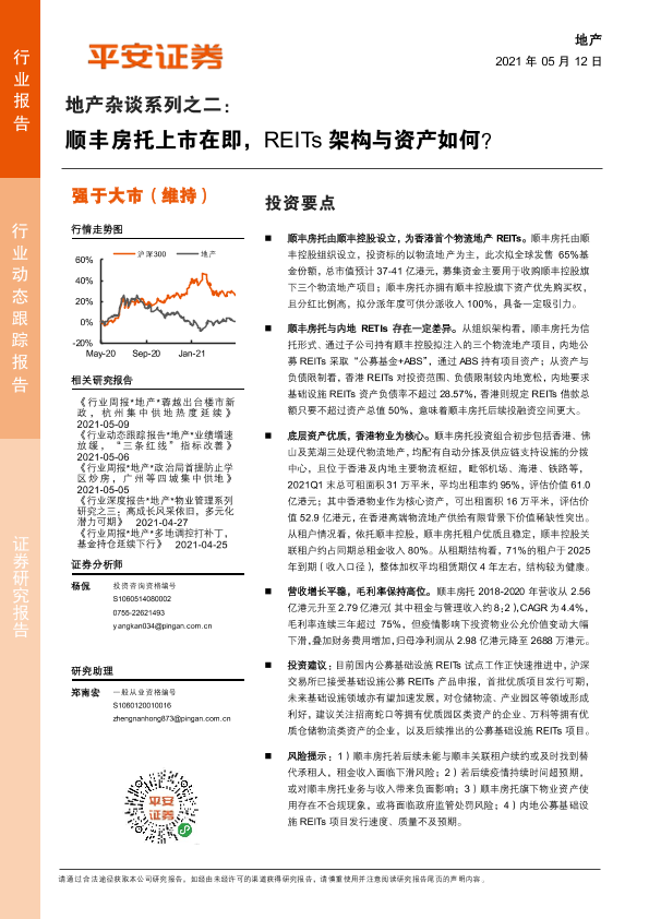 【平安证券】【20210512】地产杂谈系列之二:顺丰房托上市在即,REITs架构与资产如何?-11页