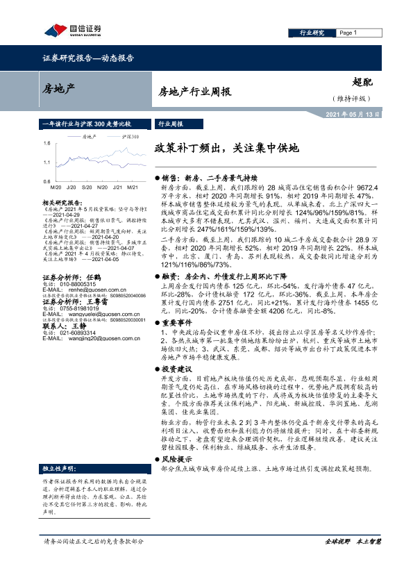 【国信证券】【20210513】房地产行业周报:政策补丁频出,关注集中供地-9页