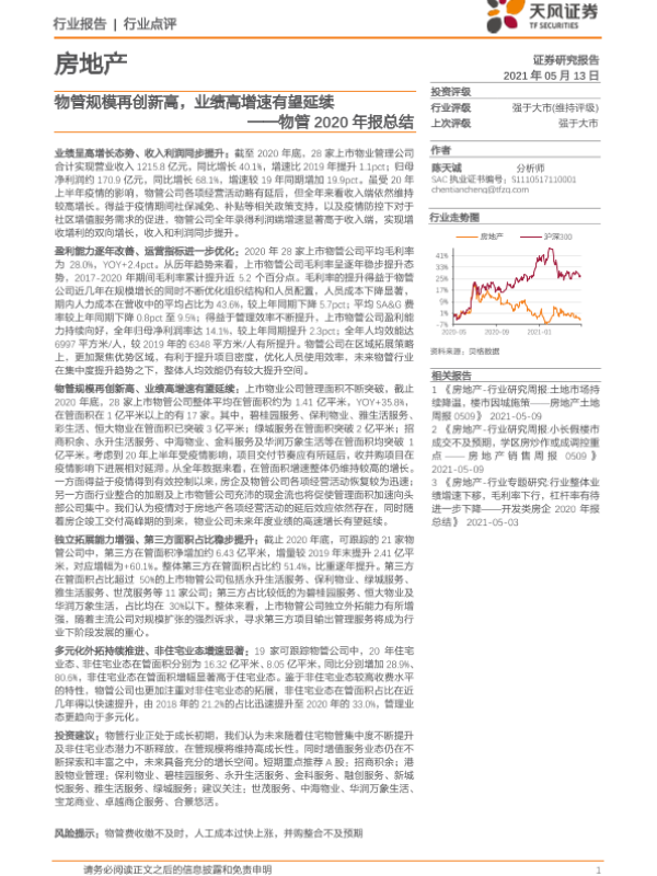 【天风证券】【20210513】物管2020年报总结:物管规模再创新高,业绩高增速有望延续-27页