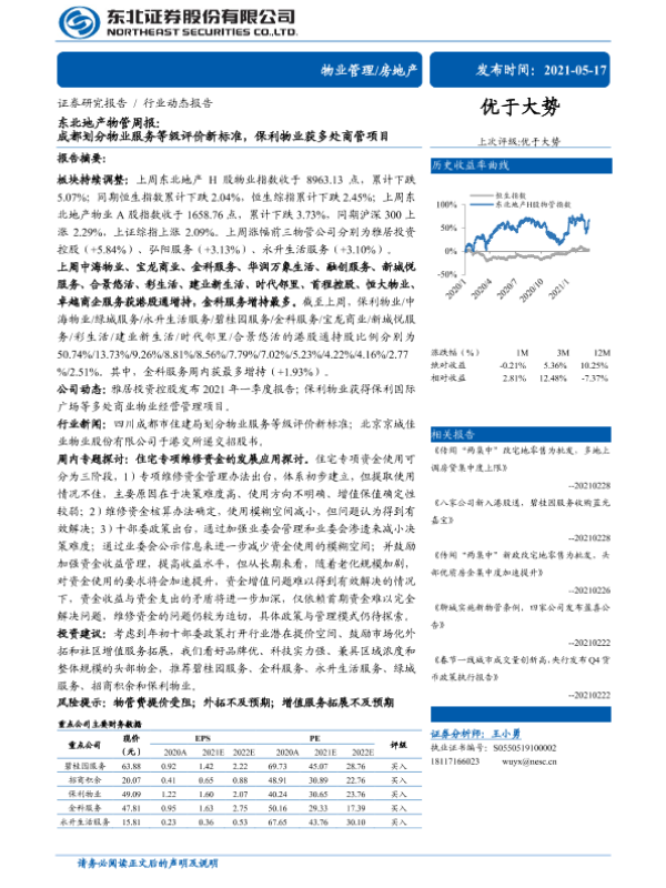 【东北证券】【20210517】东北地产物管周报:成都划分物业服务等级评价新标准,保利物业获多处商管项目-13页