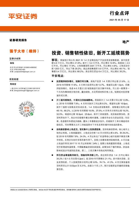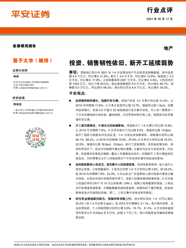 【平安证券】【20210517】地产行业点评:投资、销售韧性依旧,新开工延续弱势-7页
