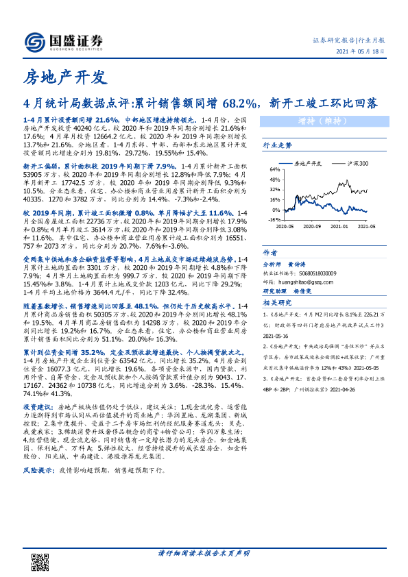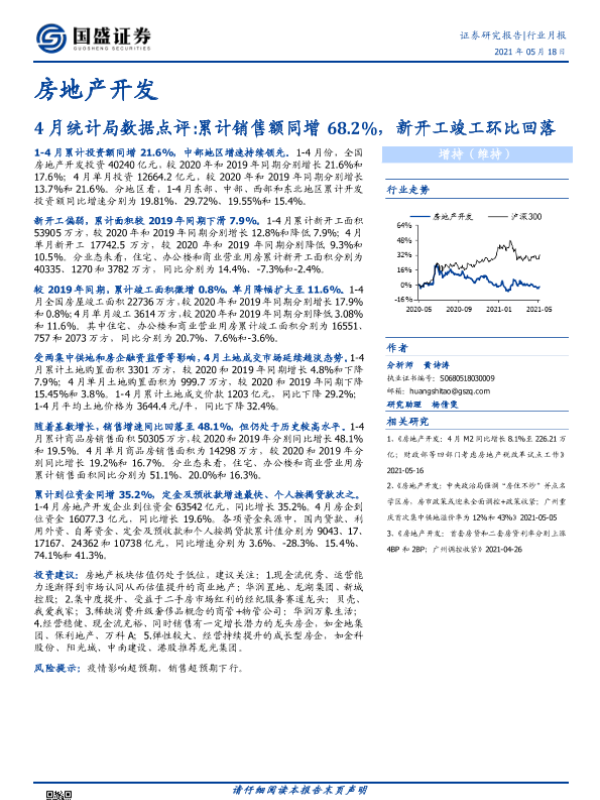 【国盛证券】【20210518】4月统计局数据点评 累计销售额同增68.2%,新开工竣工环比回落-13页