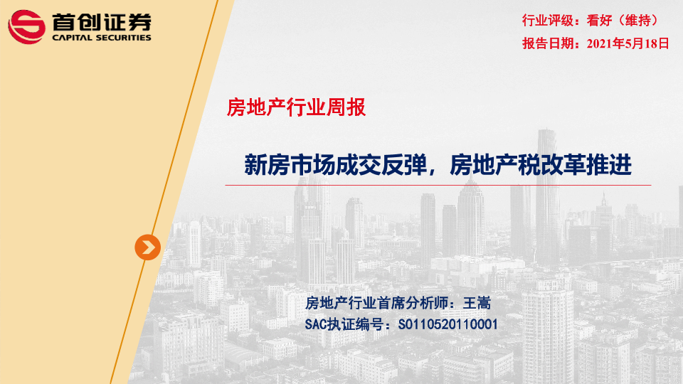 【首创证券】【20210518】房地产行业周报:新房市场成交反弹,房地产税改革推进-24页