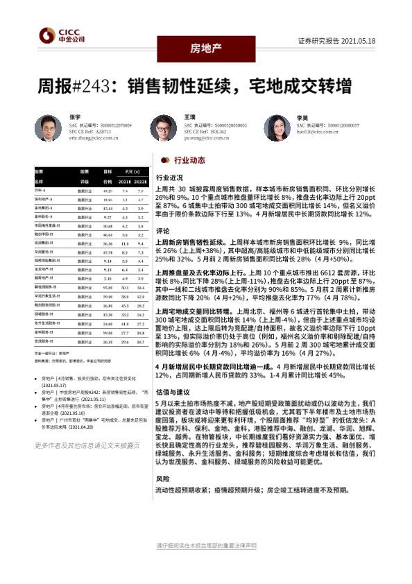 【中金公司】【20210518】房地产行业周报#243:销售韧性延续,宅地成交转增-12页