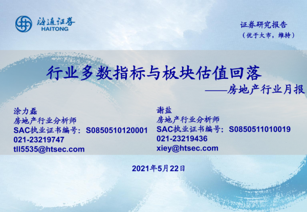 【海通证券】【20210522】房地产行业月报:行业多数指标与板块估值回落-18页