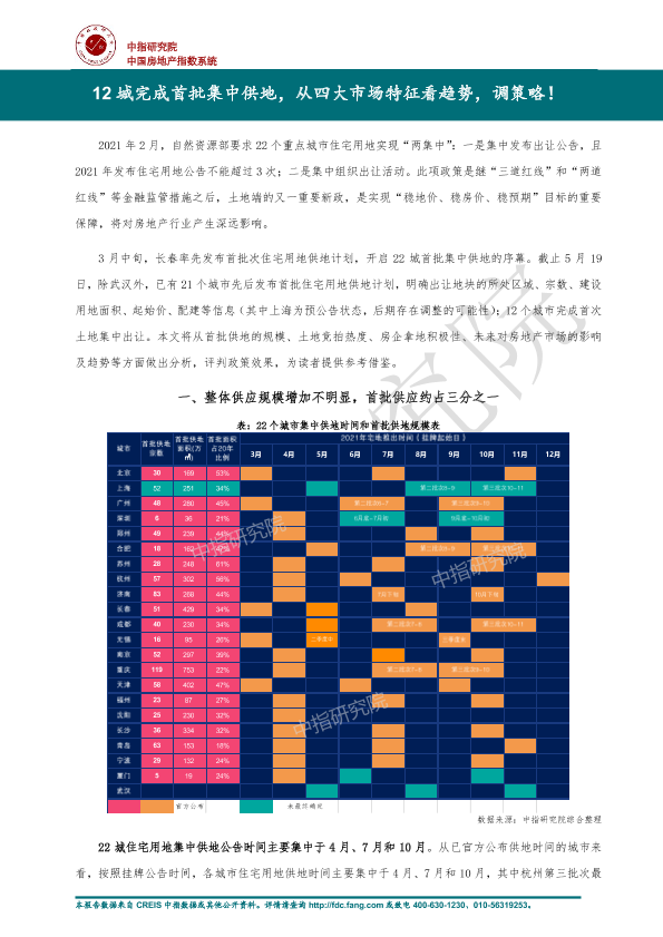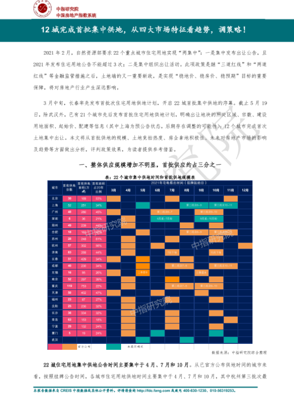 【中指研究院】【20210521】12城完成首批集中供地,从四大市场特征看趋势,调策略!-10页