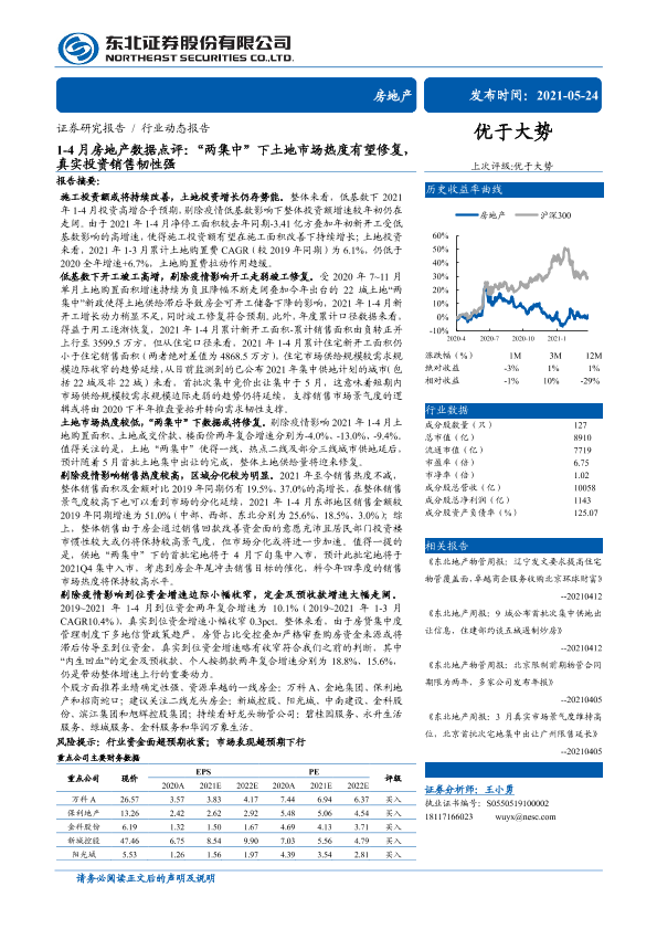 【东北证券】【20210524】1-4月房地产数据点评:“两集中”下土地市场热度有望修复,真实投资销售韧性强-19页