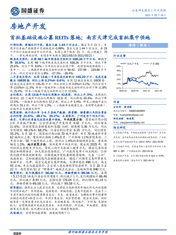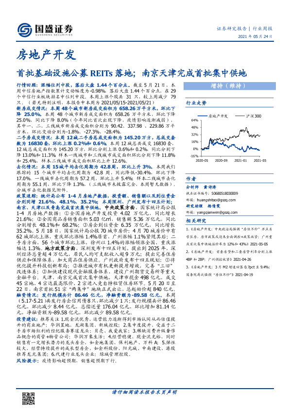 【国盛证券】【20210524】房地产开发行业周报:首批基础设施公募REITs落地;南京天津完成首批集中供地-24页