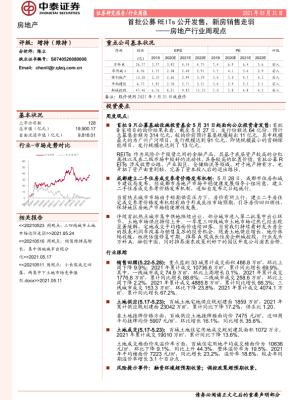【中泰证券】【20210531】首批公募REITs公开发售,新房销售走弱-13页