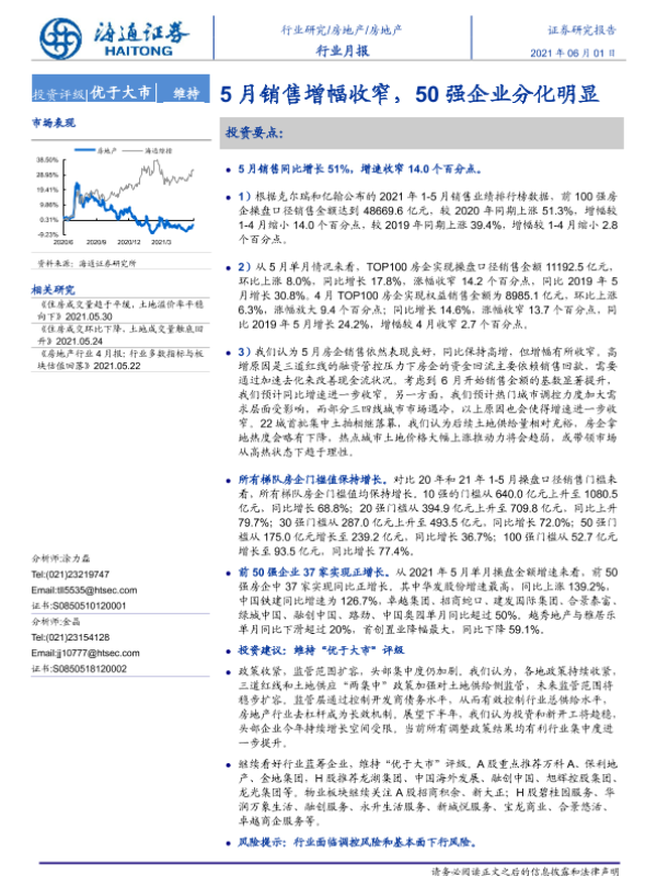 【海通证券】【20210601】5月销售增幅收窄,50强企业分化明显-11页