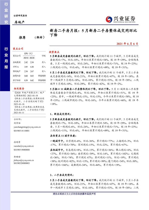 【兴业证券】【20210606】5月新房二手房整体成交同环比下降-9页