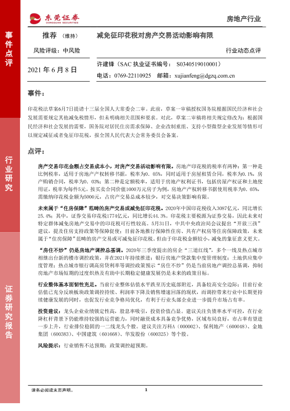 【东莞证券】【20210608】减免征印花税对房产交易活动影响有限-2页