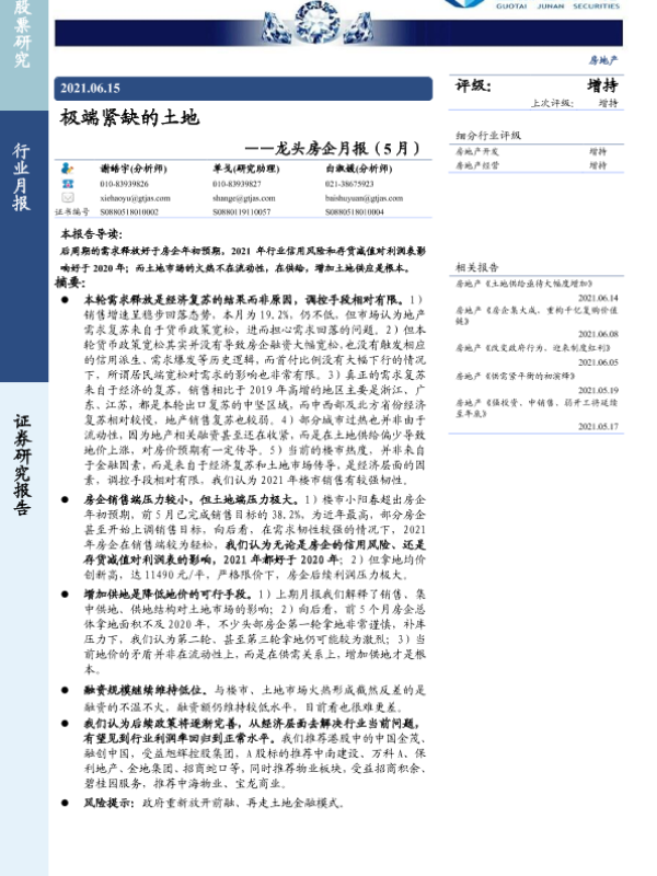 【国泰君安证券】【20210615】龙头房企月报(5月):极端紧缺的土地-12页