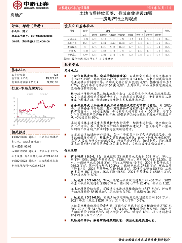【中泰证券】【20210615】土地市场持续回落,县域商业建设加强-12页