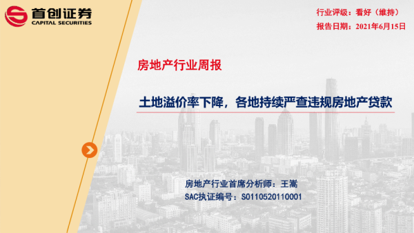 【首创证券】【20210615】房地产行业周报:土地溢价率下降,各地持续严查违规房地产贷款-27页