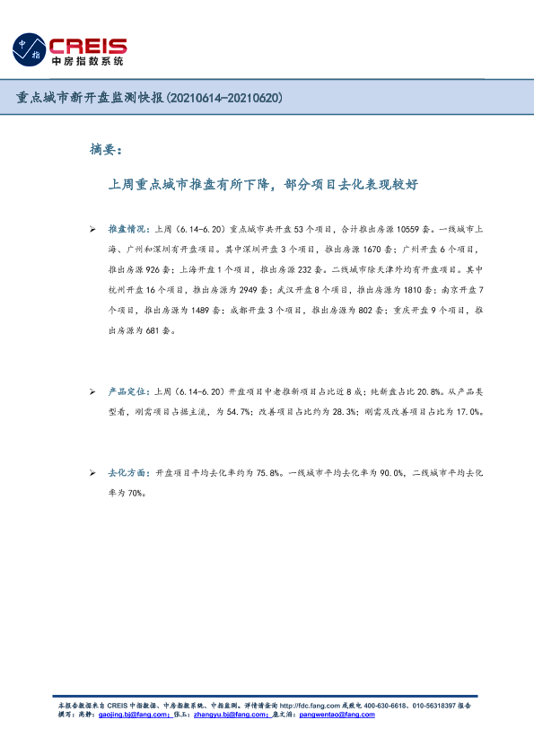 【中指研究院】【20210620】重点城市新开盘监测快报-4页