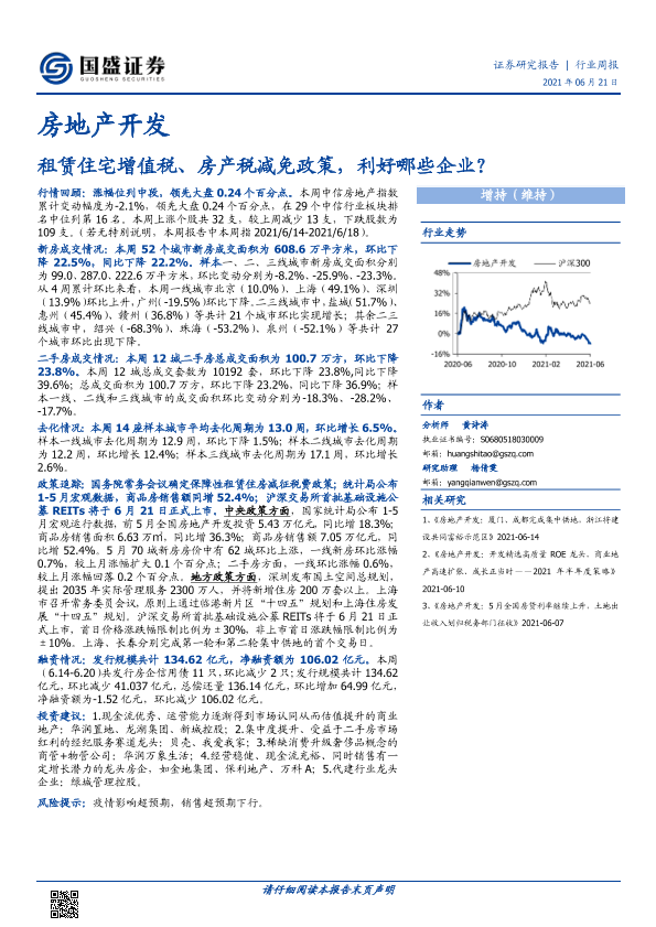 【国盛证券】【20210621】房地产开发行业周报:租赁住宅增值税、房产税减免政策,利好哪些企业?-27页
