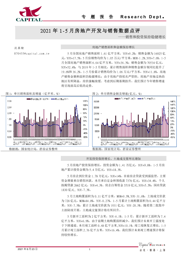 【群益证券】【20210623】2021年1-5月房地产开发与销售数据点评:销售和投资保持稳健增长-2页